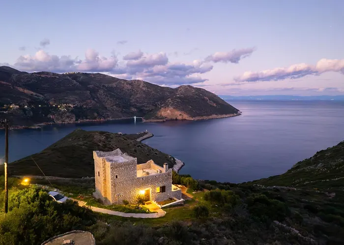 Vila Vila Taenarioum Antico - Mani Stone Tower With Sea View Paliros je umístěna 2 km od Archaeological Area Tainaro, je 2-ložnicové ubytování s terasou.